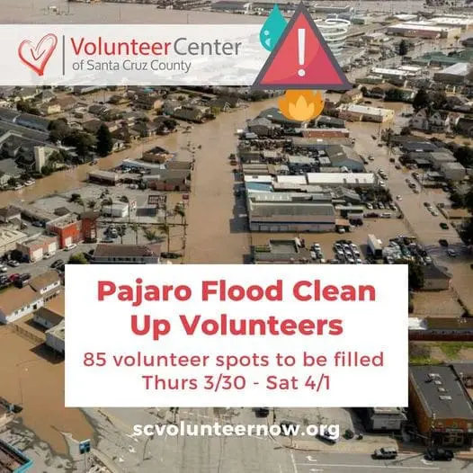 The massive flooding along the Pajaro River has damaged hundreds of homes and we need volunteers. We hope to be able to bring a lot of volunteer power out to the affected neighborhoods to start mucking out driveways and homes and get started removing damaged property.